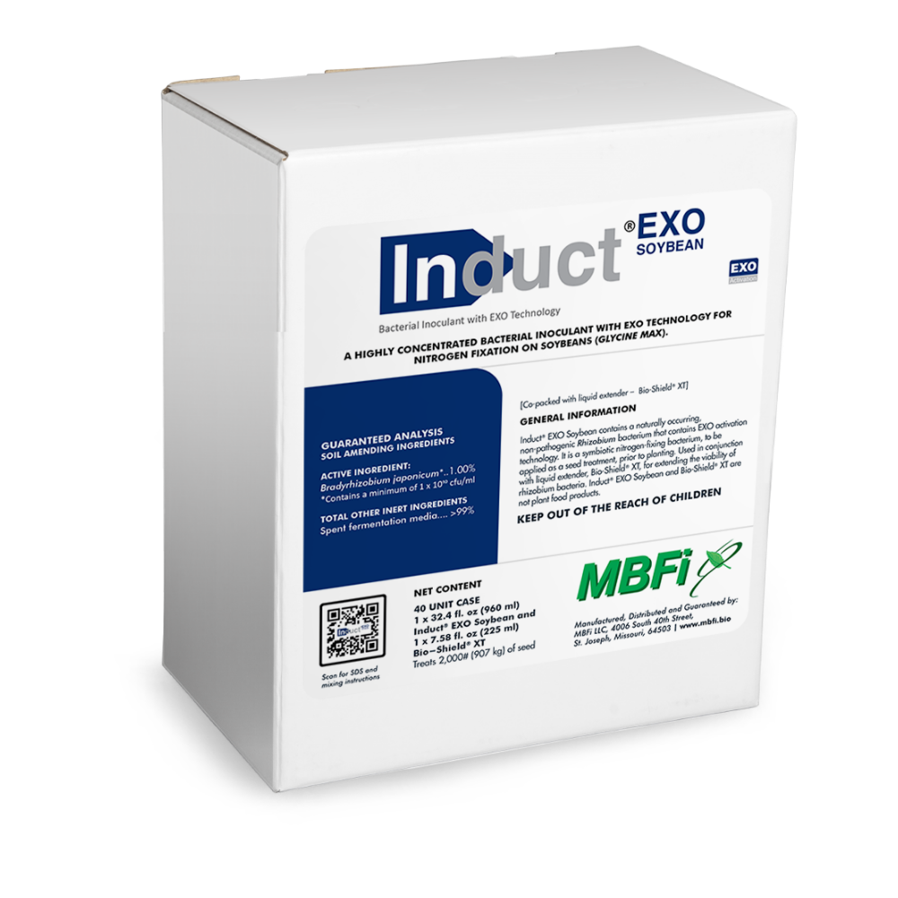 4×40 unit Case contains: 4 x 32.4 fl. oz (960ml) Induct EXO Soybean + 4 x 7.58 fl. oz (225ml) Bio-Shield XT Case treats: 8,000# or 160 units of seed at 140,000 seed per unit.